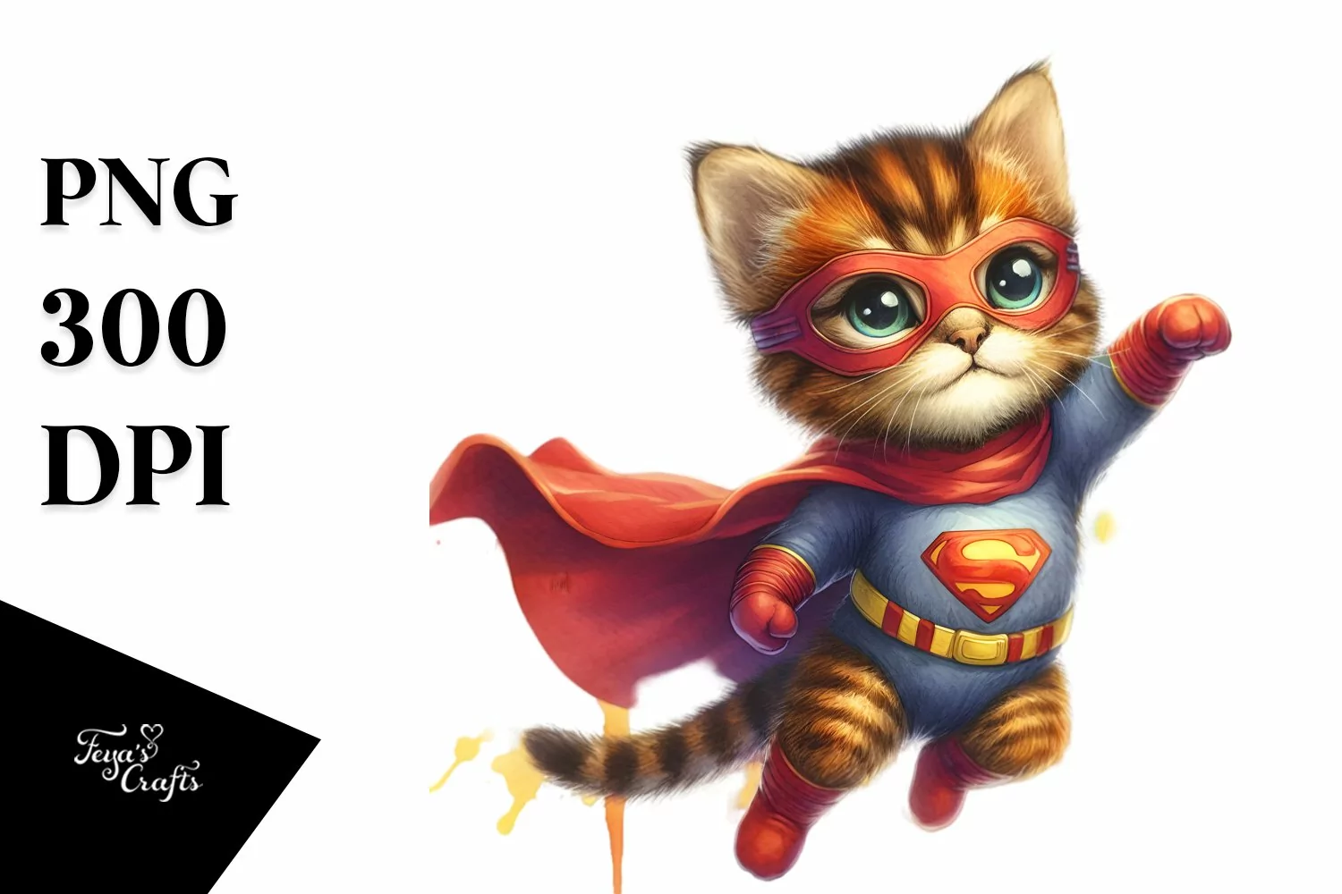 Hero Baby Cat Watercolor Art | Sublimation Clipart example image 1