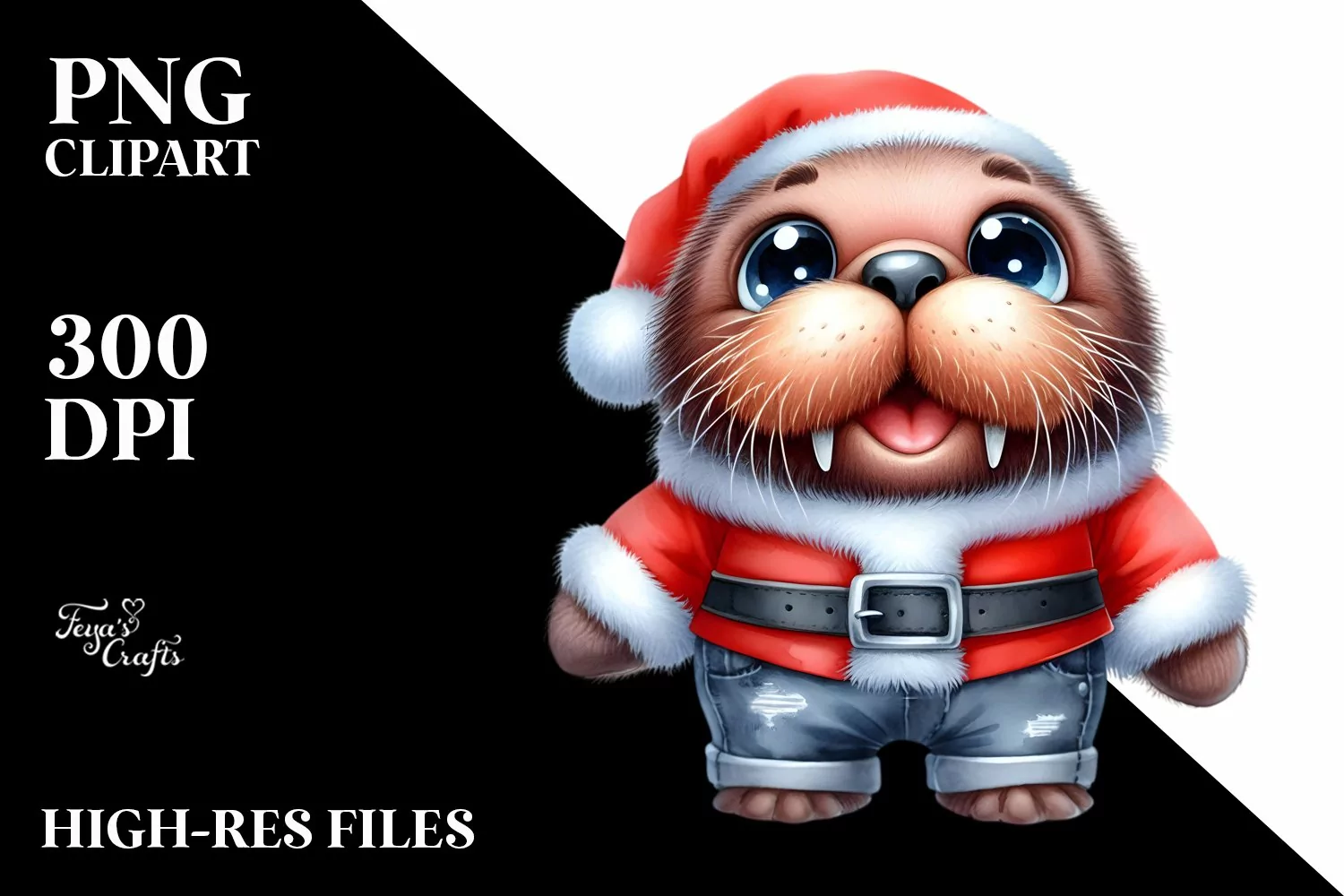 Watercolor Baby Clipart Jeans Walrus Whitebackground Bigeyes Elementsnottouchingthecanvasedges Standinguphumanlike Santasuit