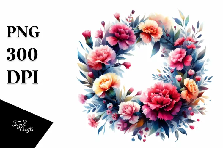 Watercolor Sticker Summer Flower Abstract Vibrant Png Sublimation Carnation Whreath