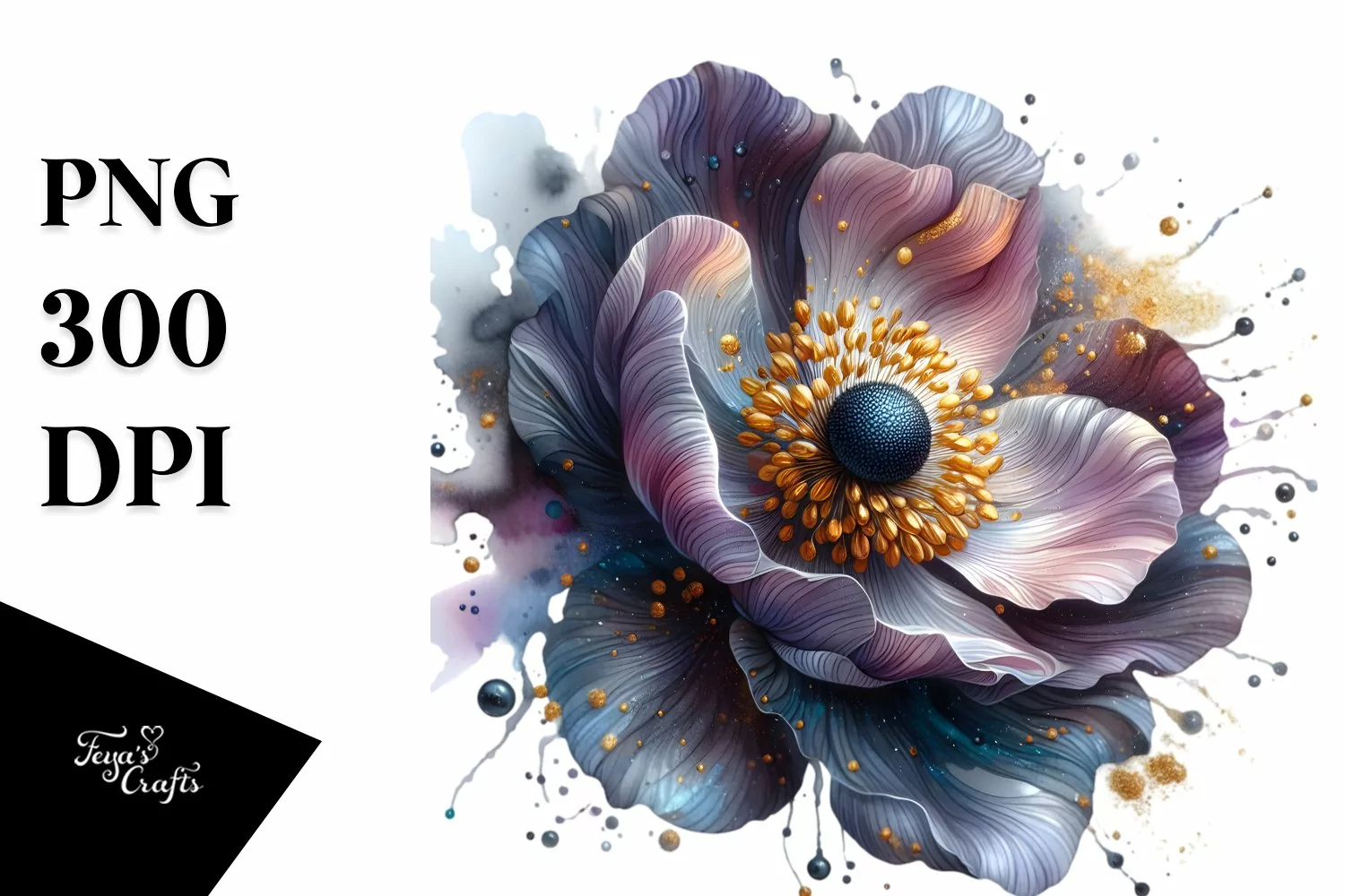 Sticker Summer Flower Shiny Abstract Anemone Png Sublimation Goldeninsertions