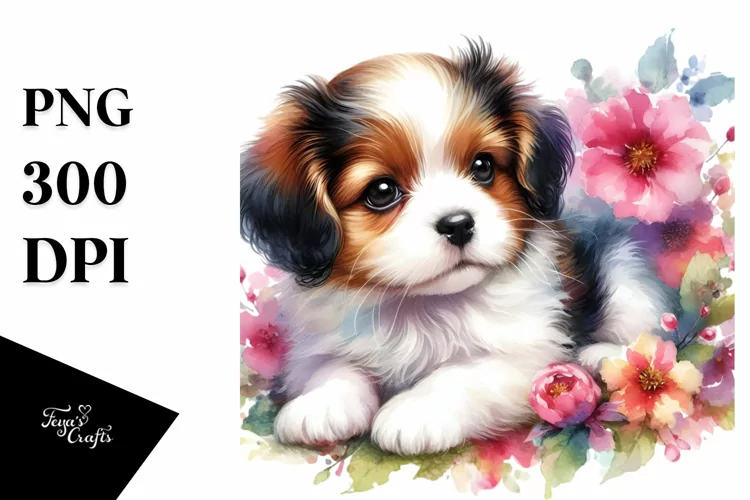 Similar Design Products to Colorful Watercolor Baby Dog | Sublimation Clipart
