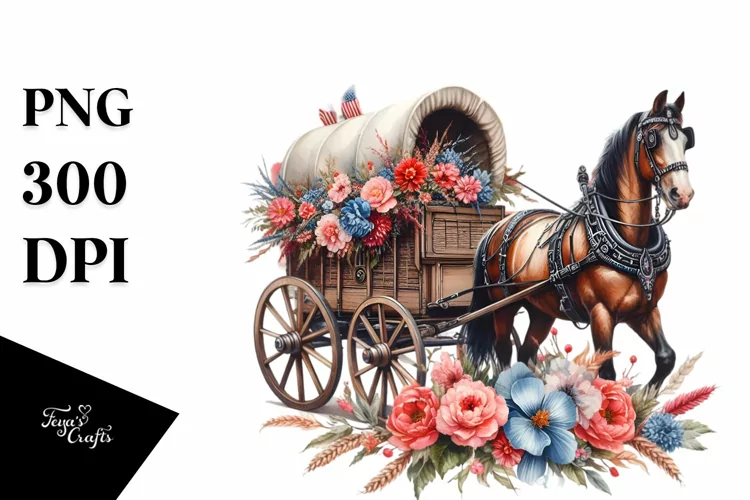 Similar Design Products to Vintage Oilish Horse Wagon | Watercolor Clipart