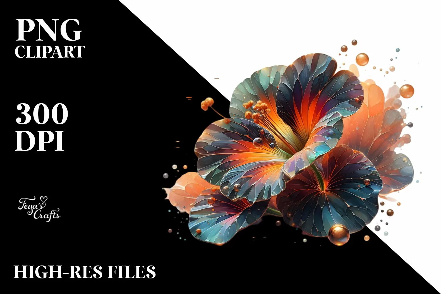 Watercolor Glossy Splash Abstract Clipart Glass Metallic Sublimation Whitebackground Nasturtium