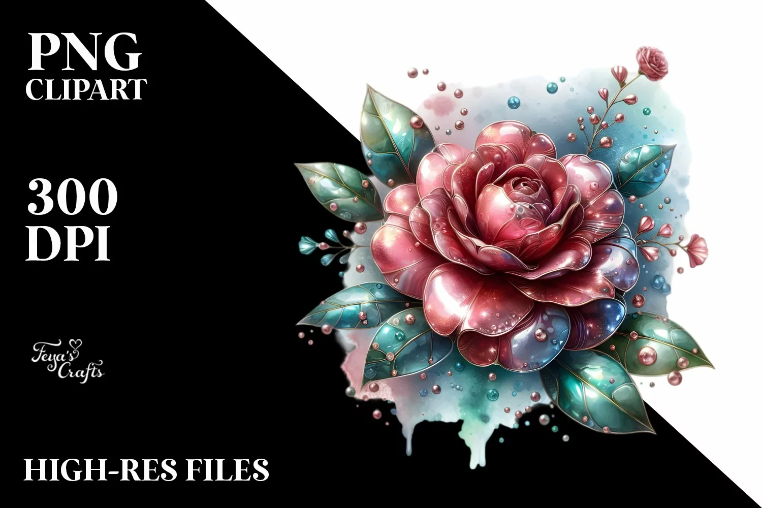 Camellia with Metallic Insertions | Sublimation | Clipart example image 1