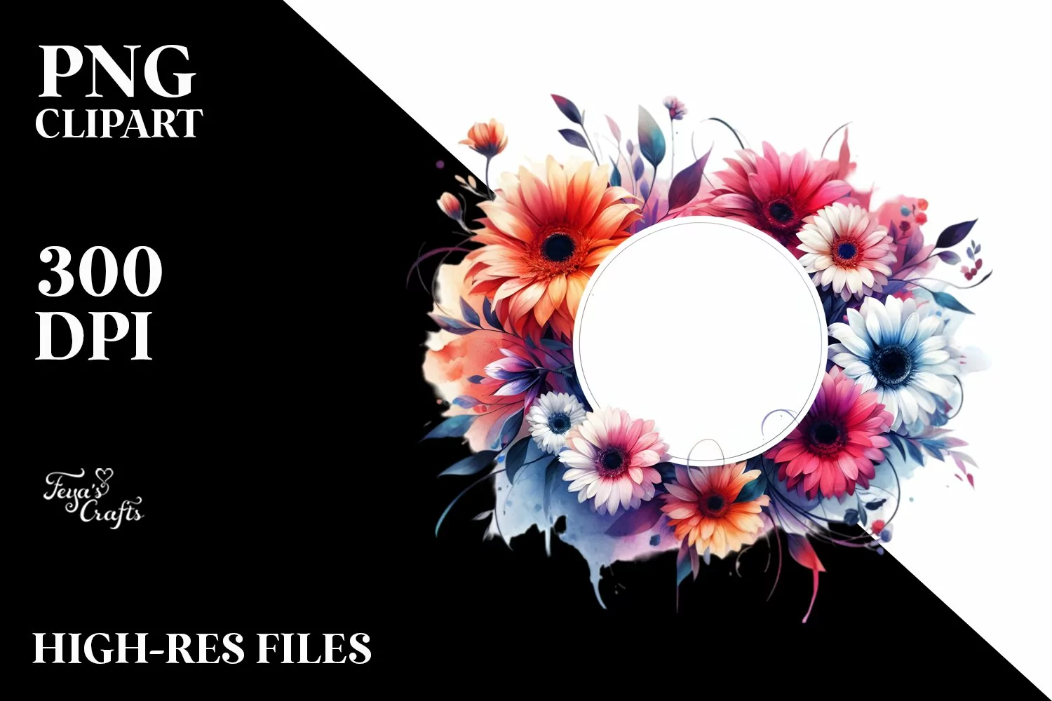 Vibrant Horizontal Frame Gerbera | Sublimation | Clipart