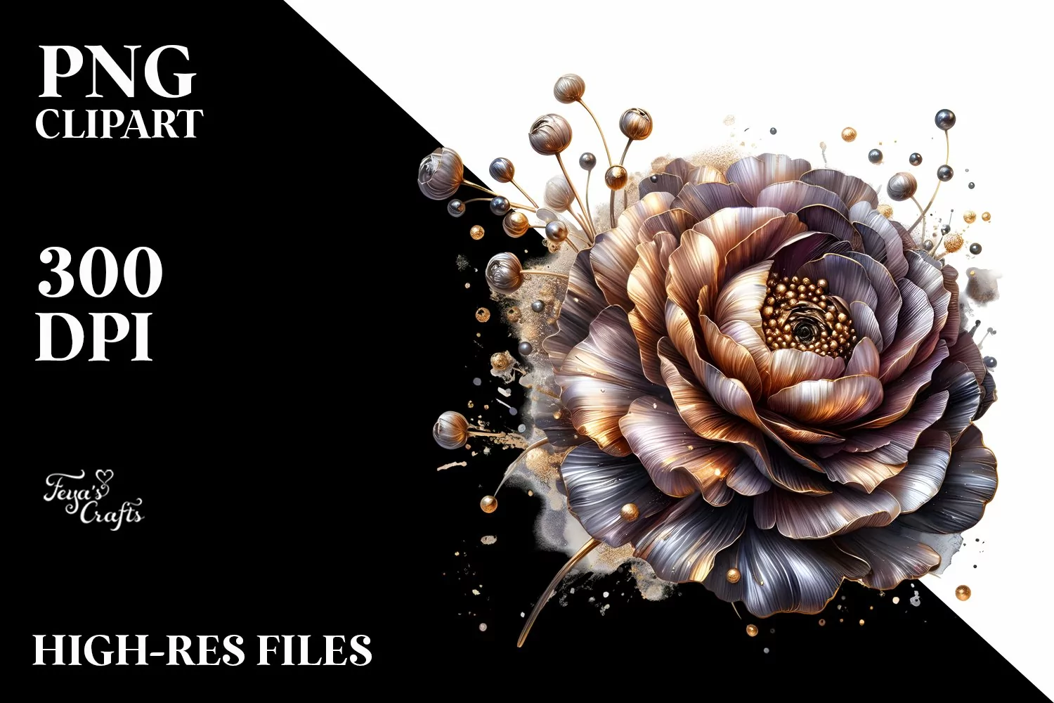 Clipart Ranunculus Whitebackground Watercolorsplash Goldeninsertions Shinymaterial Abstractartistic