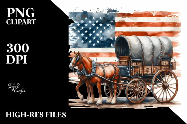 Vintage Clipart Rusted Whitebackground Centered Usaflag Horsewagon