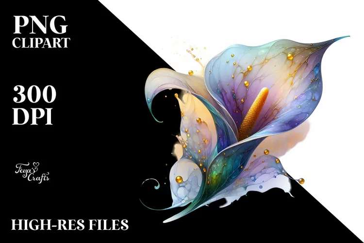 Watercolor Sticker Summer Flower Abstract Detailed Png Sublimation Callalily Glasslike