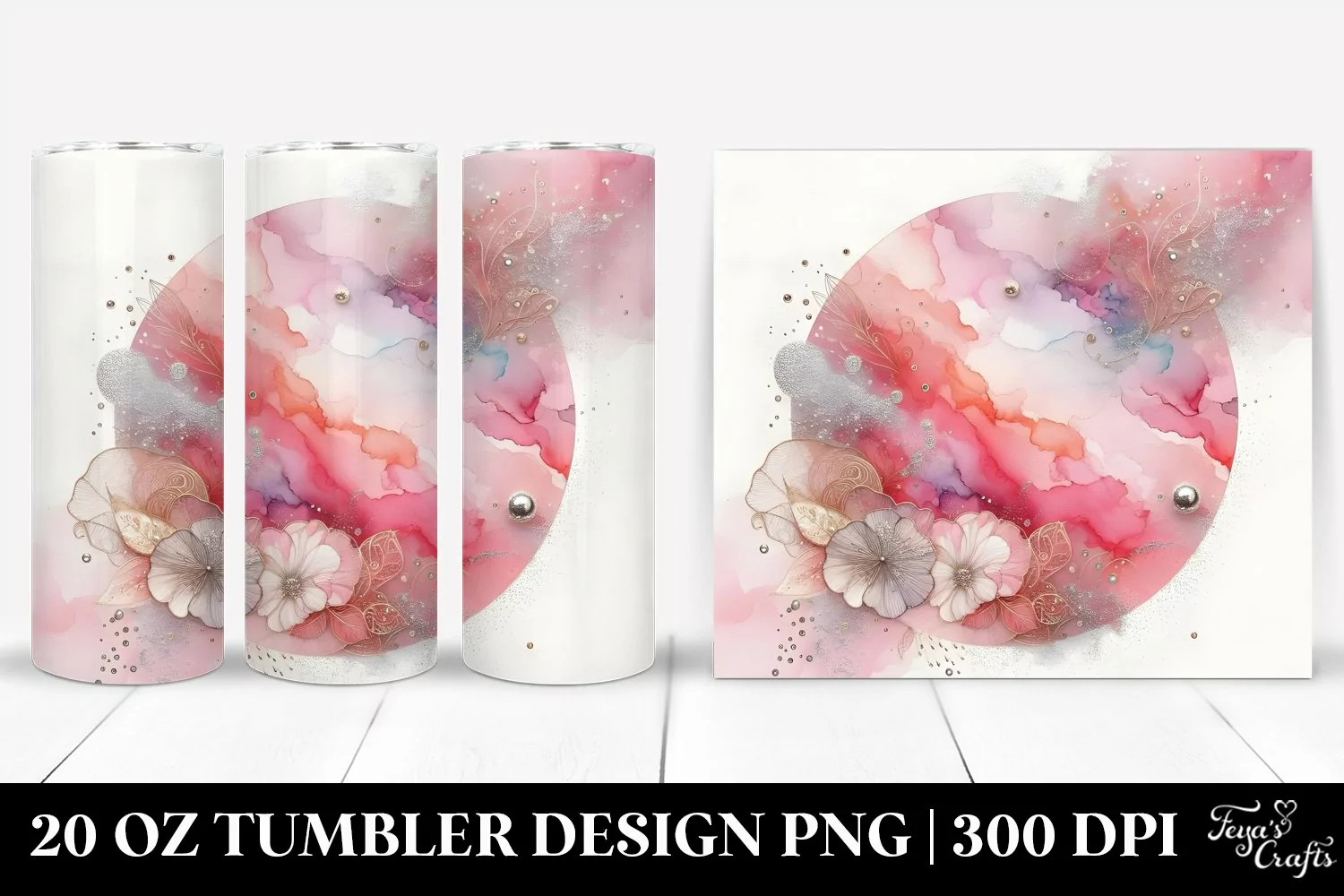 Watercolor Whimsical Foil Pink Clipart Blue Png Stains Sublimation Tumbler