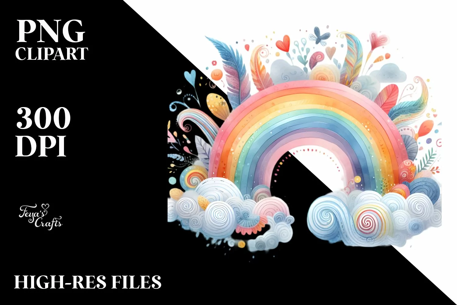 Colorful Wimsical Watercolor Ranbow | Sublimation | Clipart