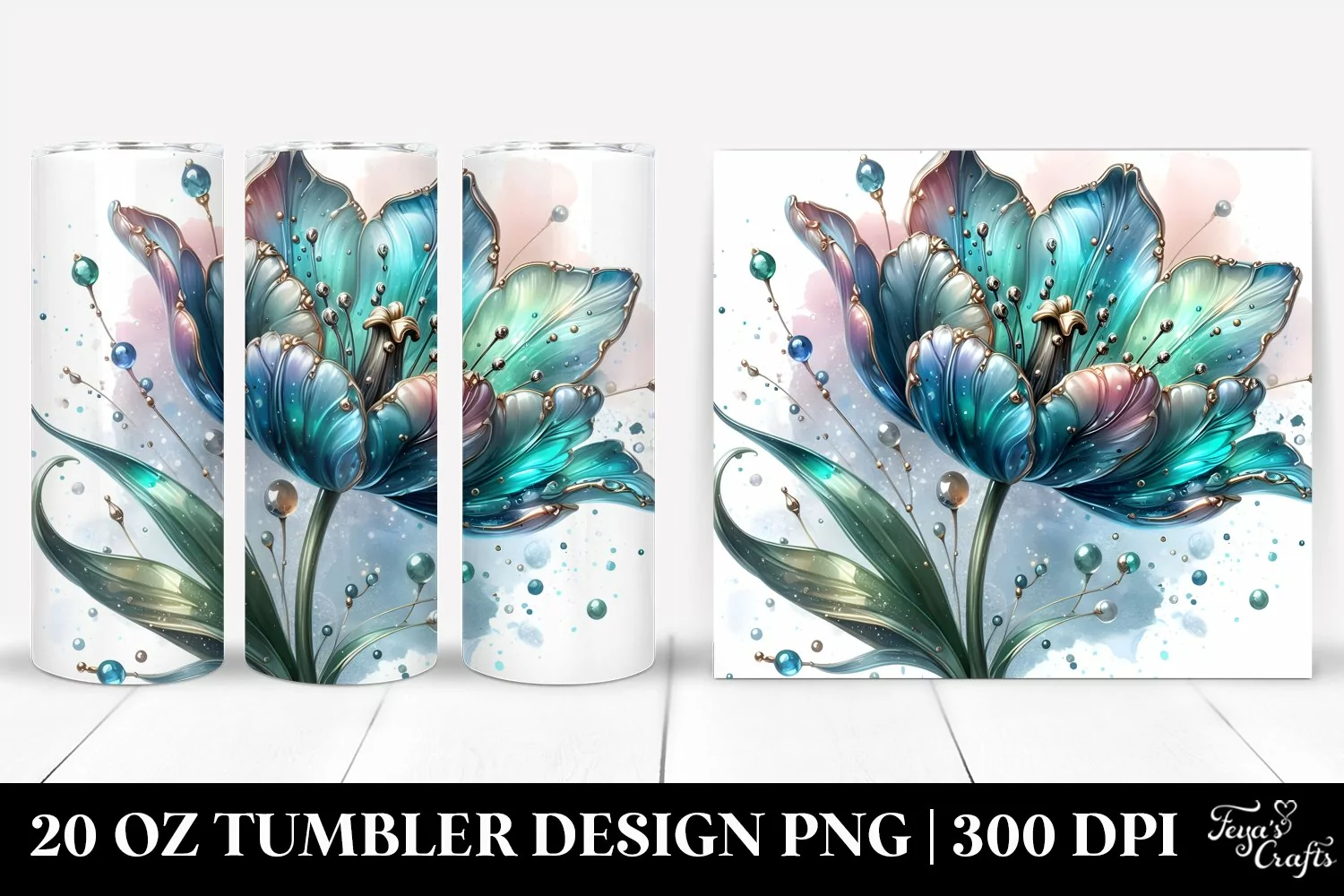 Glossy Tulip with Metalic Insertions | 20 oz Tumbler example image 1