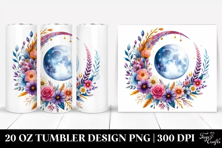 Vibrant Boho Moon with Flowers | 20 oz Tumbler