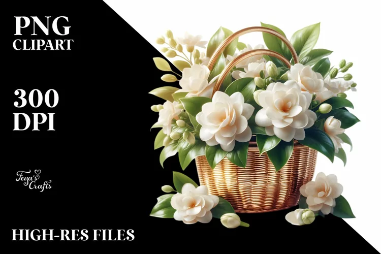 Nature Floral Flower Shiny Clipart Plant Basket Sublimation Gardenia Whitebackground
