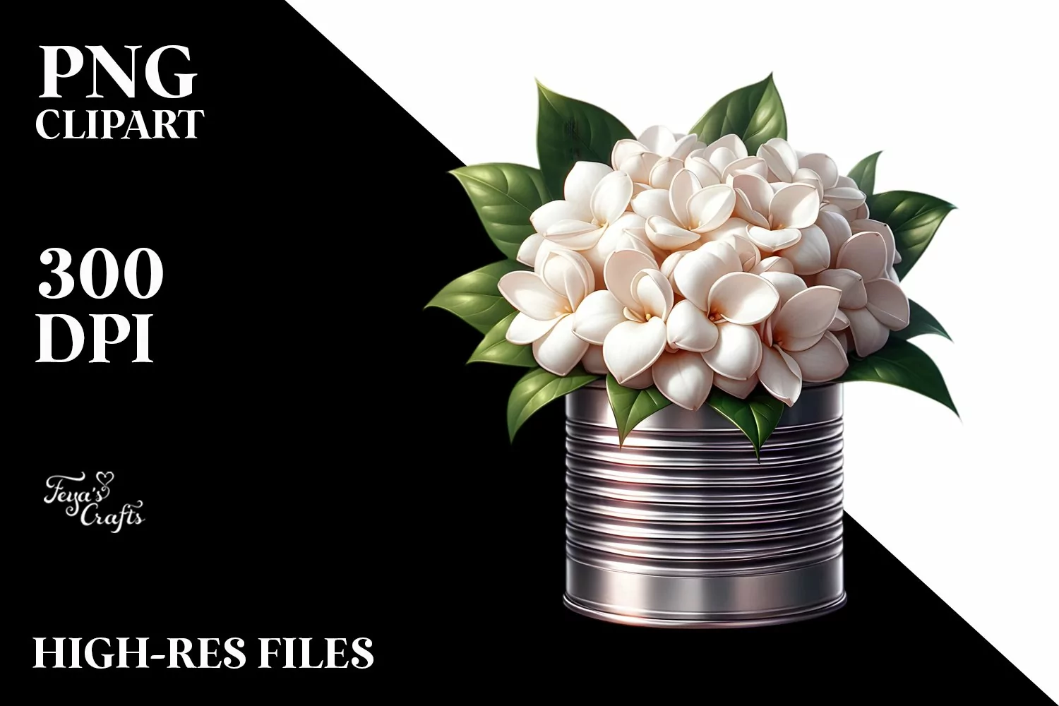 Shiny Can with Large Gardenia | Clipart example image 1