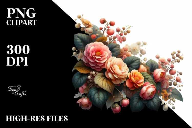 Large Floral Artistic Clipart Filled Right Sublimation Left Begonia
