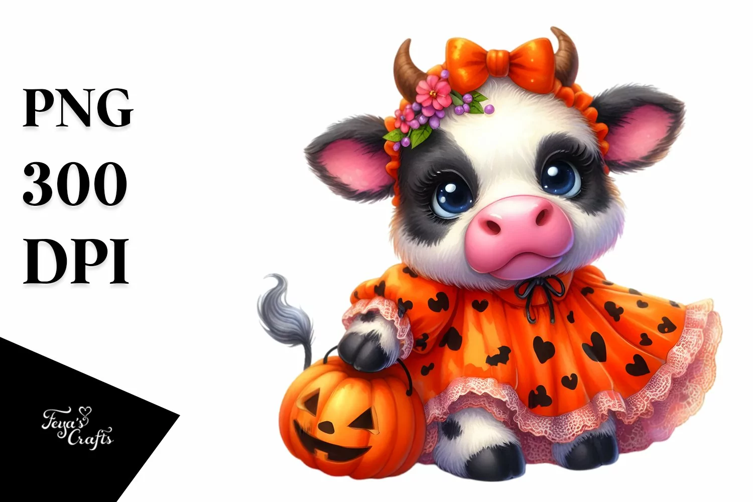 Cute Baby Cow Halloween | Sublimation | Clipart example image 1