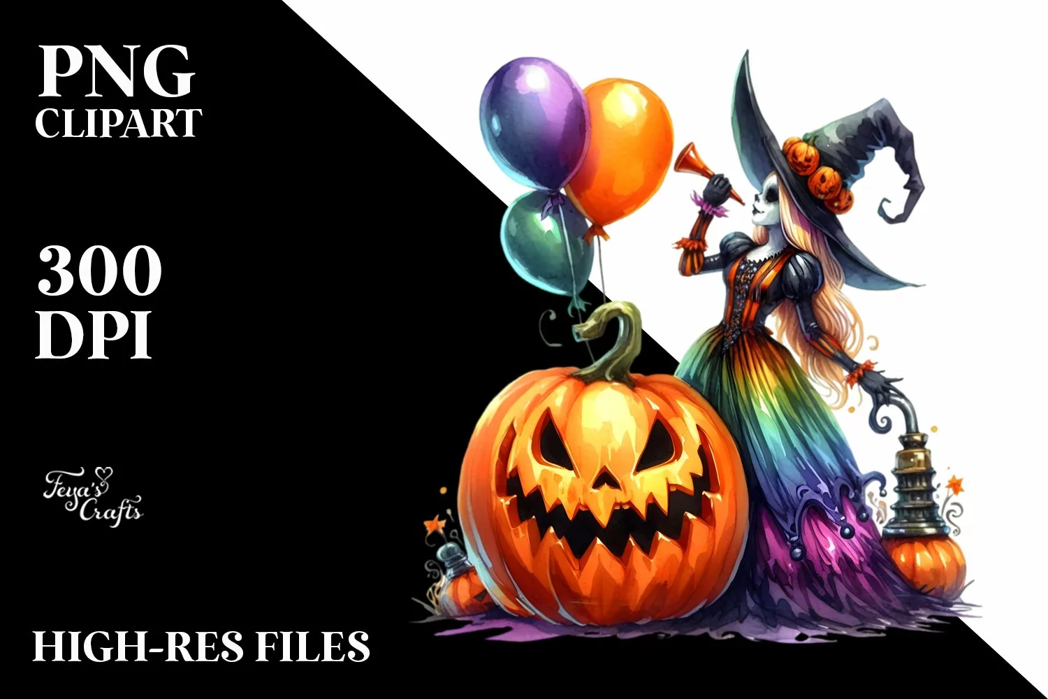 Vibrant Witch Halloween Art | Sublimation Clipart example image 1
