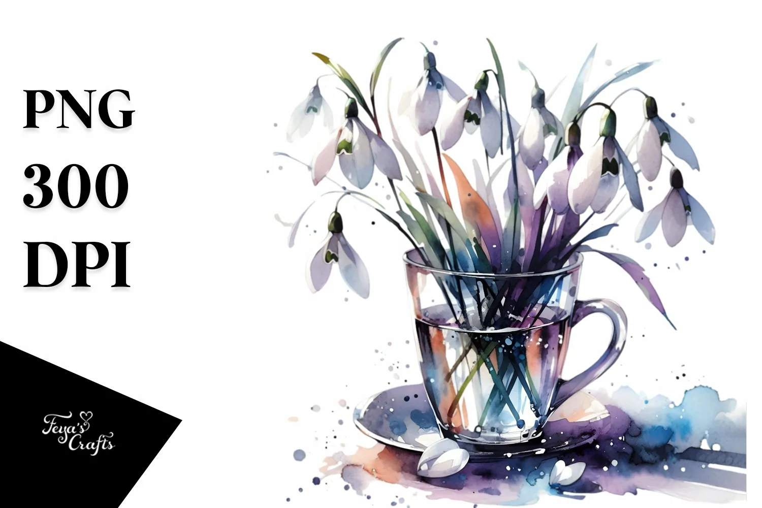 Watercolor Sticker Summer Flower Abstract Png Glass Sublimation Left Snowdrop
