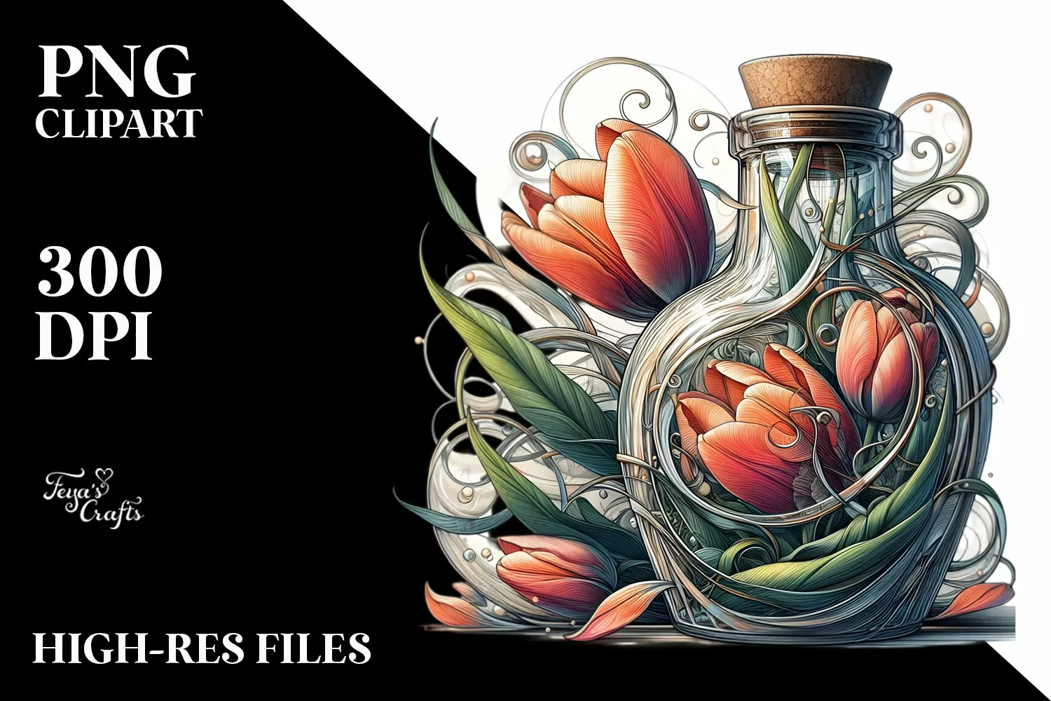 Similar Design Products to Abstract Bottle Large Tulip Watercolor Clipart