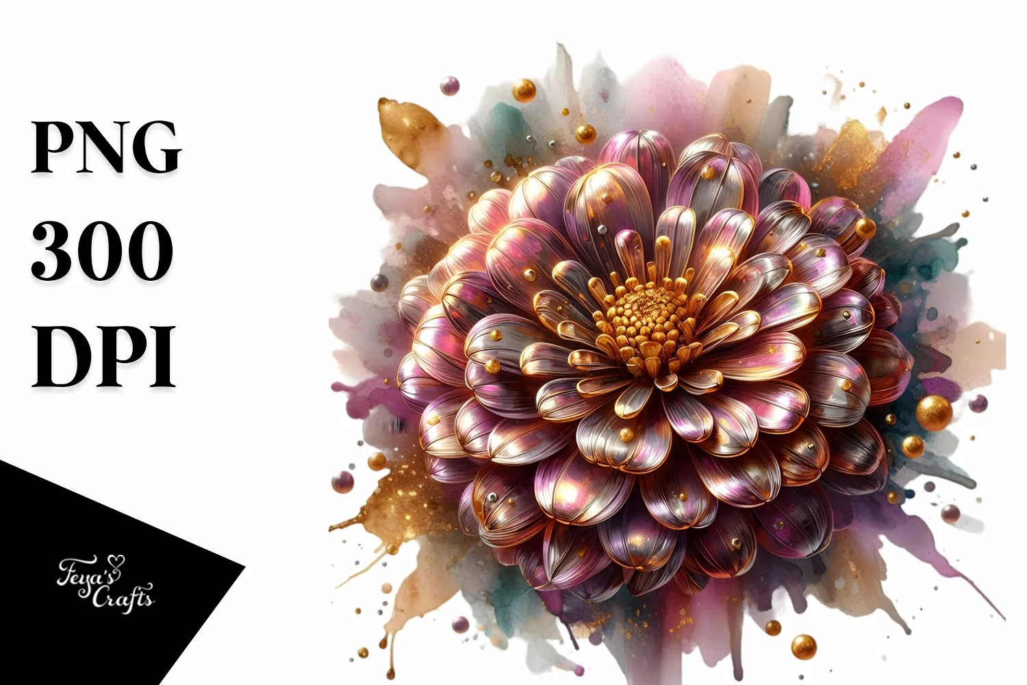 Watercolor Sticker Summer Flower Shiny Golden Abstract Png Sublimation Zinnia