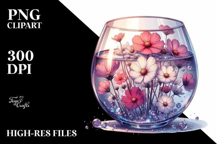 Sticker Summer Flower Shiny Png Glass Cosmos Filled Sublimation Left