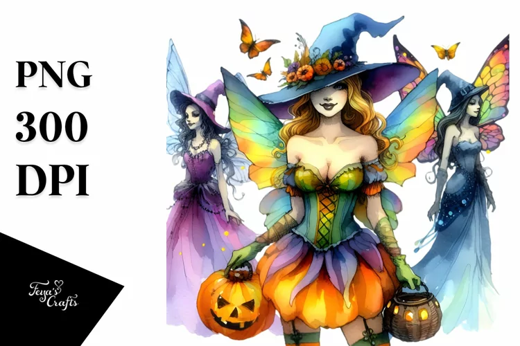 Similar Design Products to Vibrant Fairy Dressed for Halloween | Sublimation | Clipart