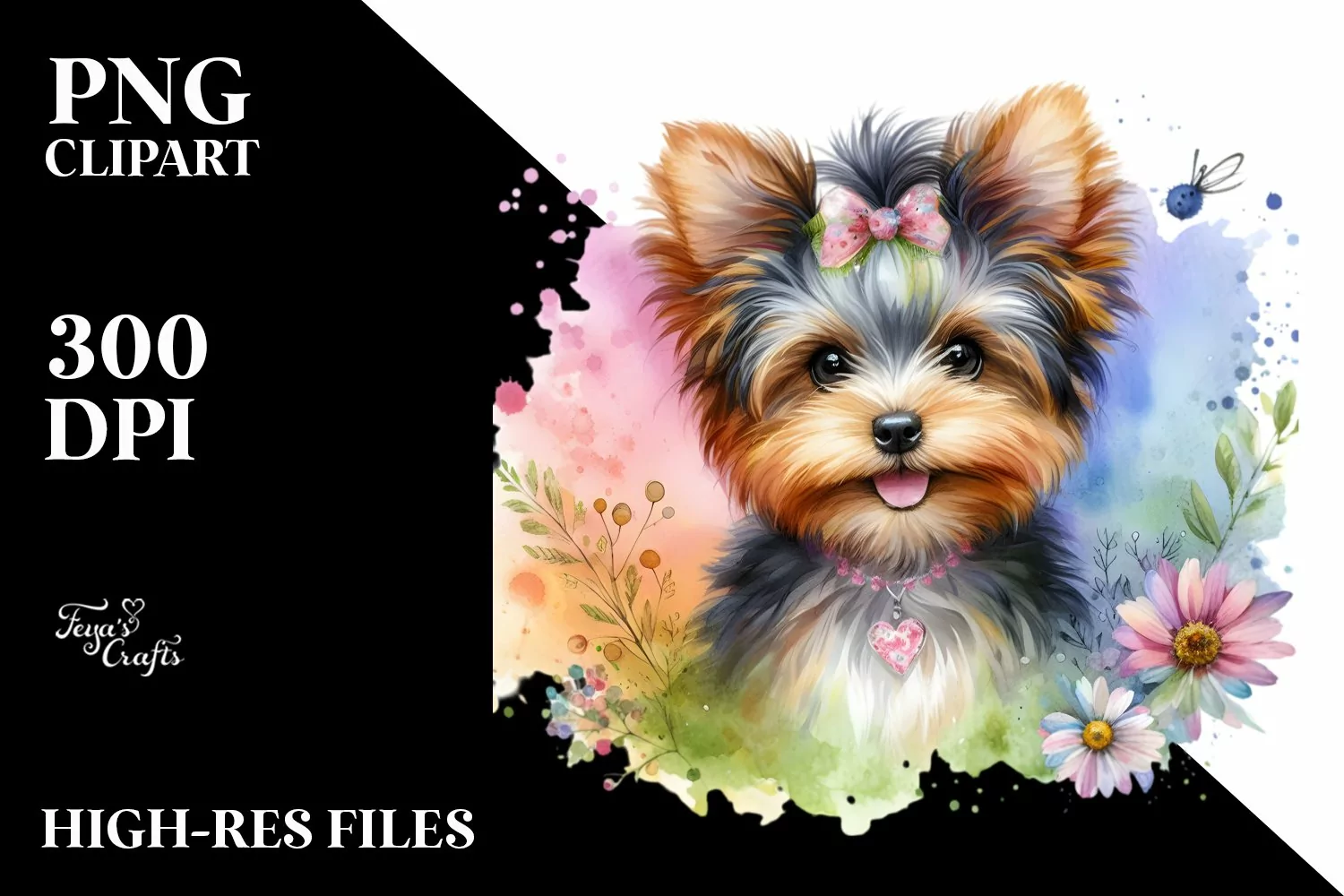 Watercolor Sticker Summer Cute Colorful Flower Png Sublimation Yorkipoo