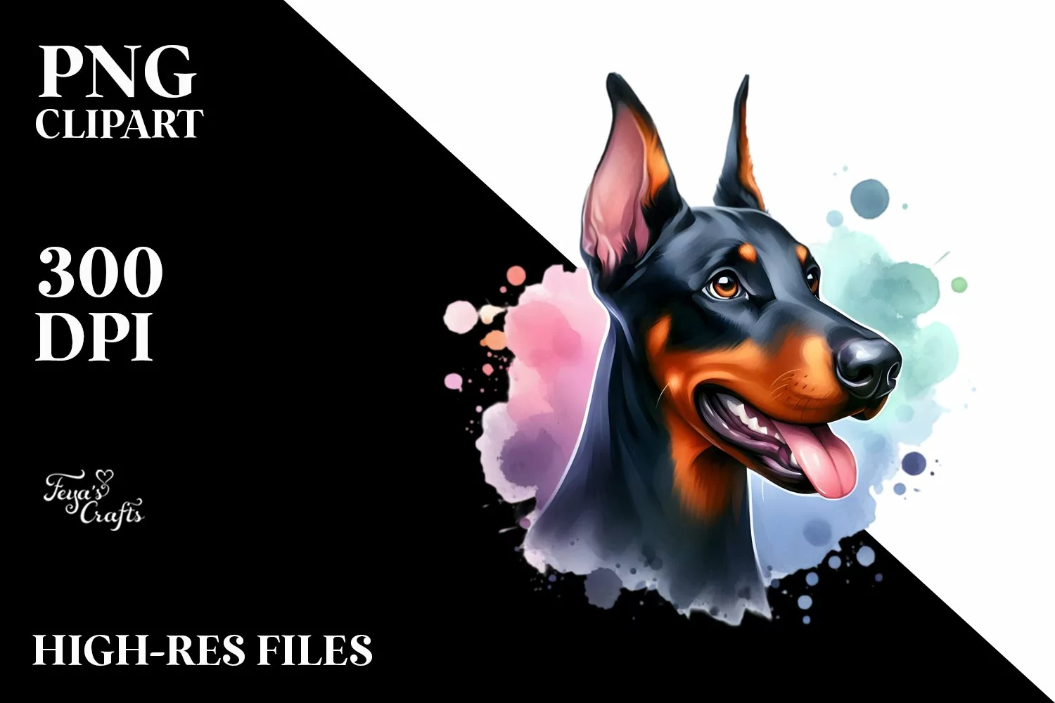 Similar Design Products to Watercolor Cute Vibrant Doberman Pinscher Clipart