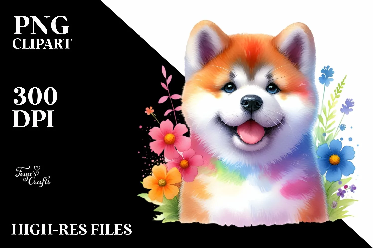 Watercolor Cute Colorful Akita Clipart