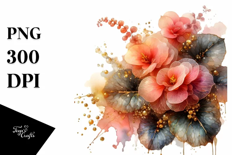 Sticker Summer Easter Flower Shiny Golden Glass Mothersday Sublimation Begonia