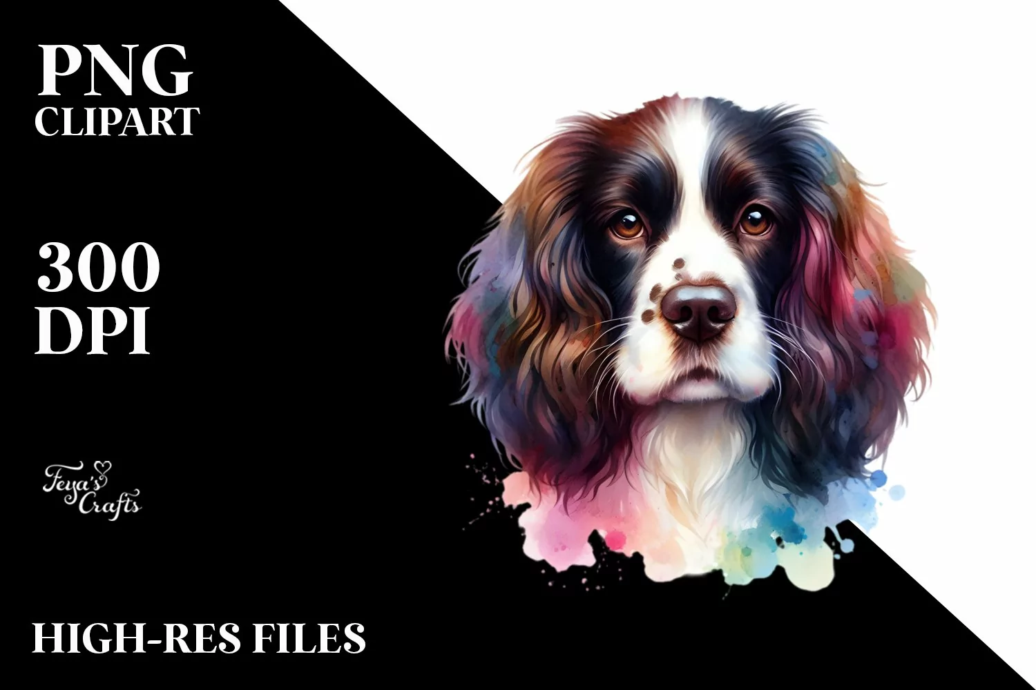 Cute Colorful English Springer Spaniel Watercolor Clipart