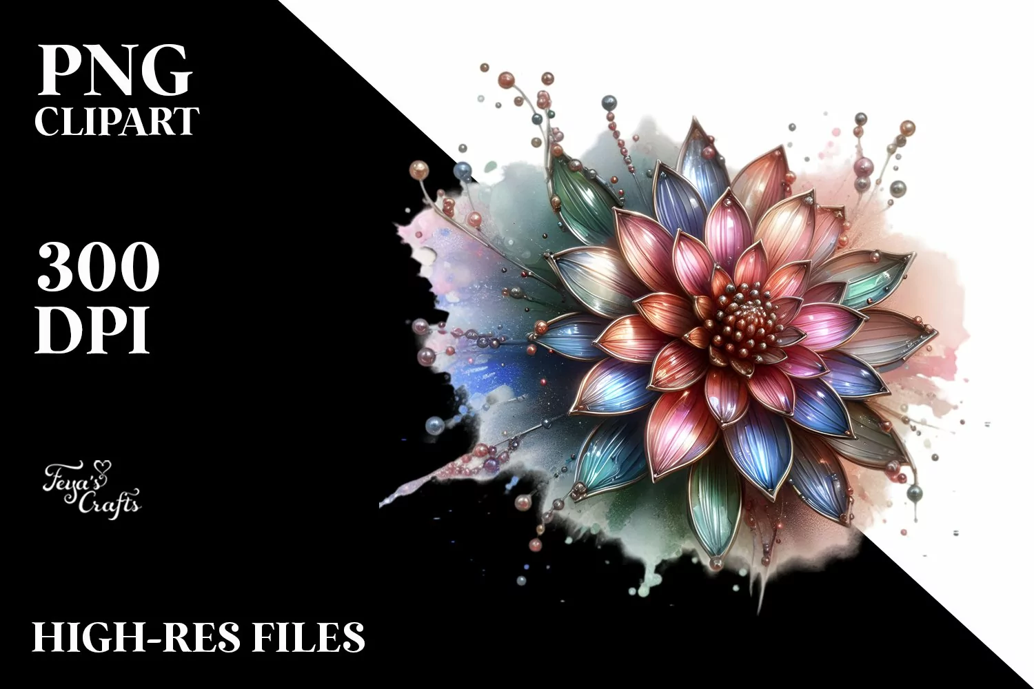 Watercolor Sticker Summer Flower Abstract Dahlia Png Sublimation Glasslikematerial Metallicinsertions