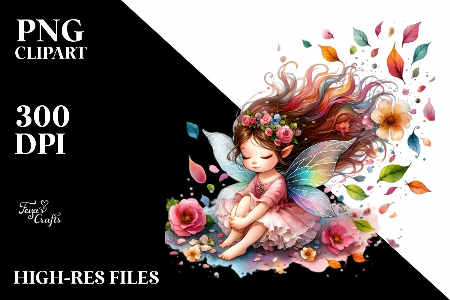 Cute Fairy Tumbling with Petals in the Wind example image 1