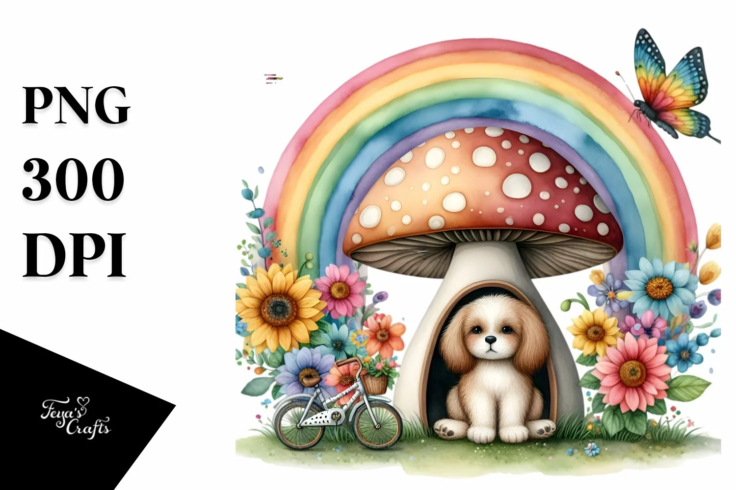 Similar Design Products to Dog House Mushroom Rainbow Flowers | Clipart