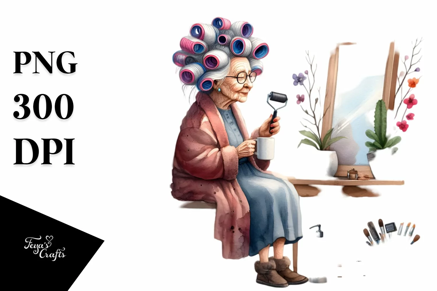 Character Sticker Summer Easter Flower Bench Mug Mothersday Oldlady Haircurlers