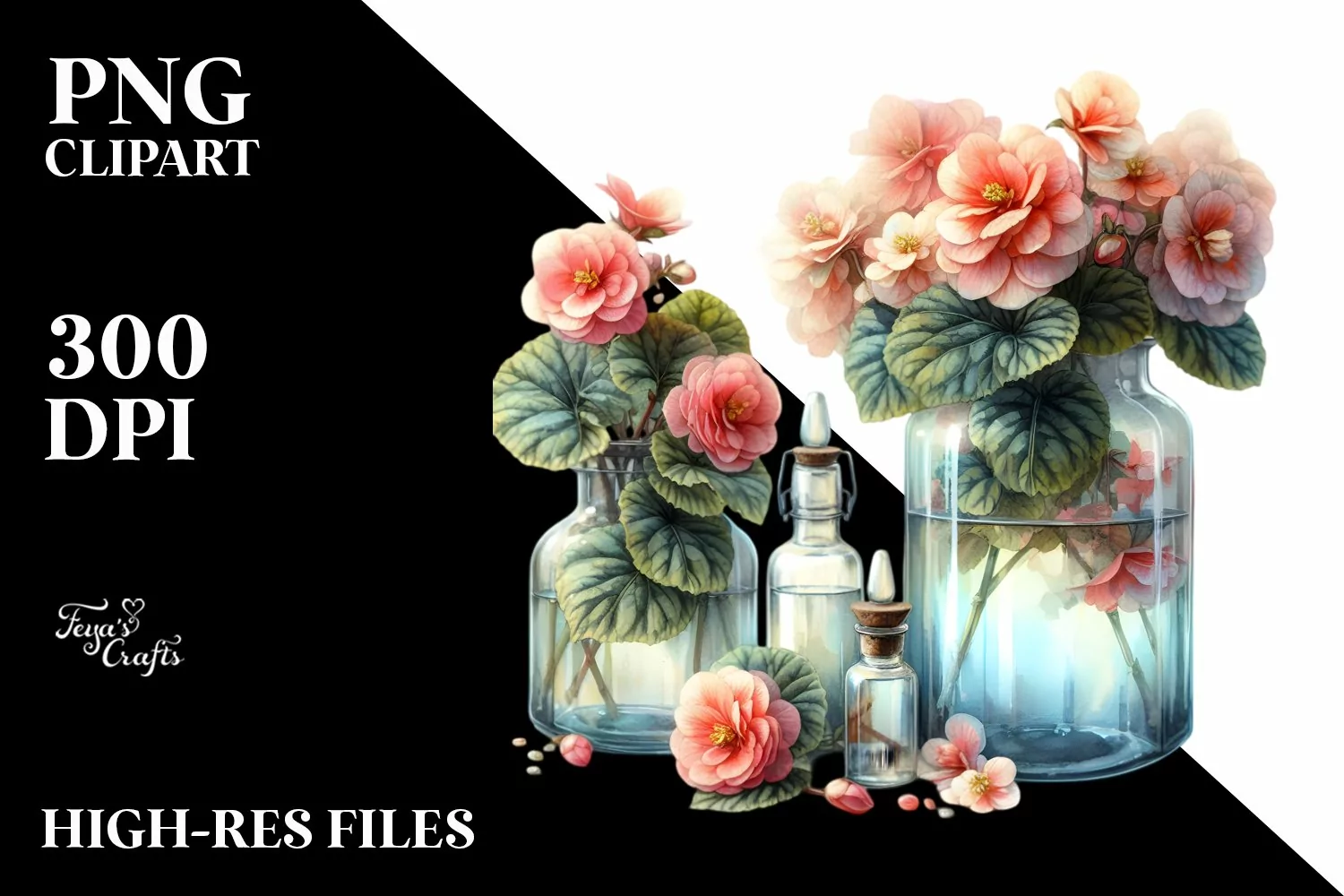 Watercolor Bottle Begonia | Clipart