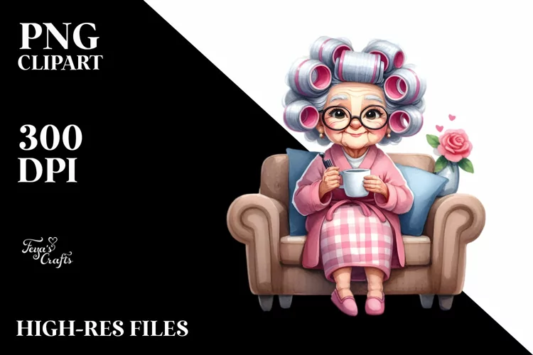 Similar Design Products to Watercolor Old Lady Sitting on Couch | Sublimation | Clipart