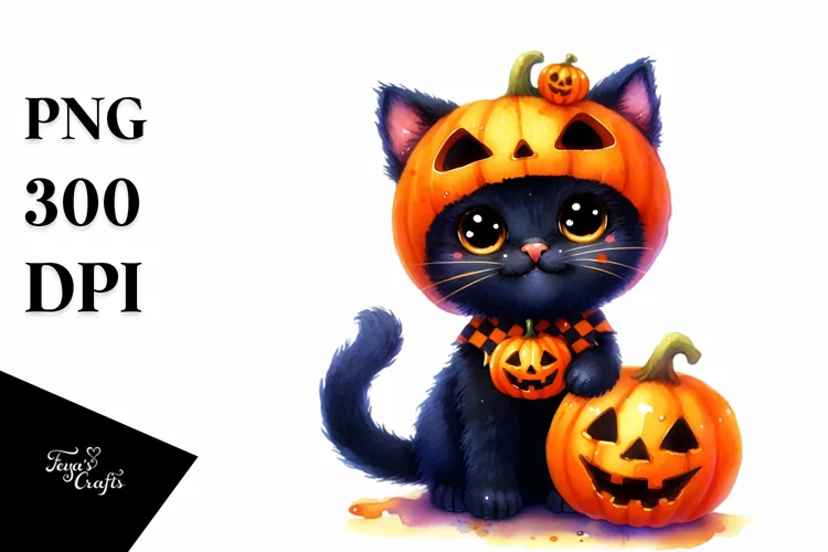 Watercolor Simple Halloween Baby Drawing Vibrant Sublimation Whitebackground Blackcat Jeffkoons