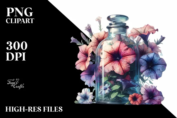 Similar Design Products to Abstract Watercolor Bottle with Petunia | Clipart