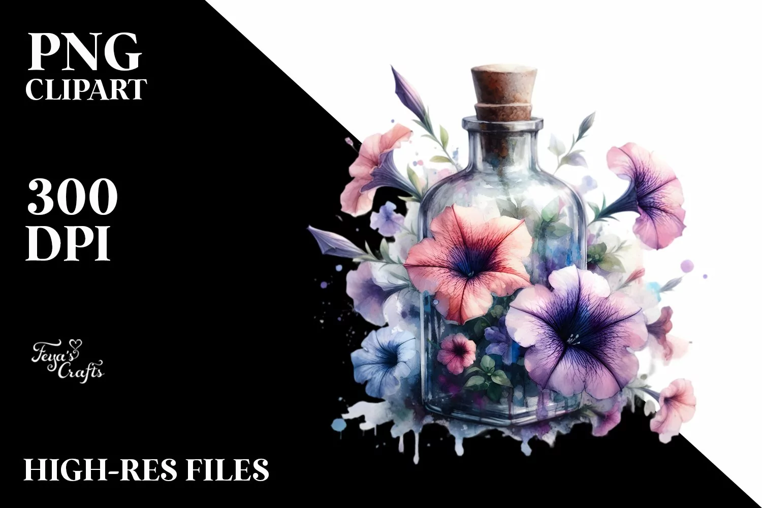 Sticker Summer Colorful Flower Abstract Vibrant Png Sublimation Petunia Glassbottle