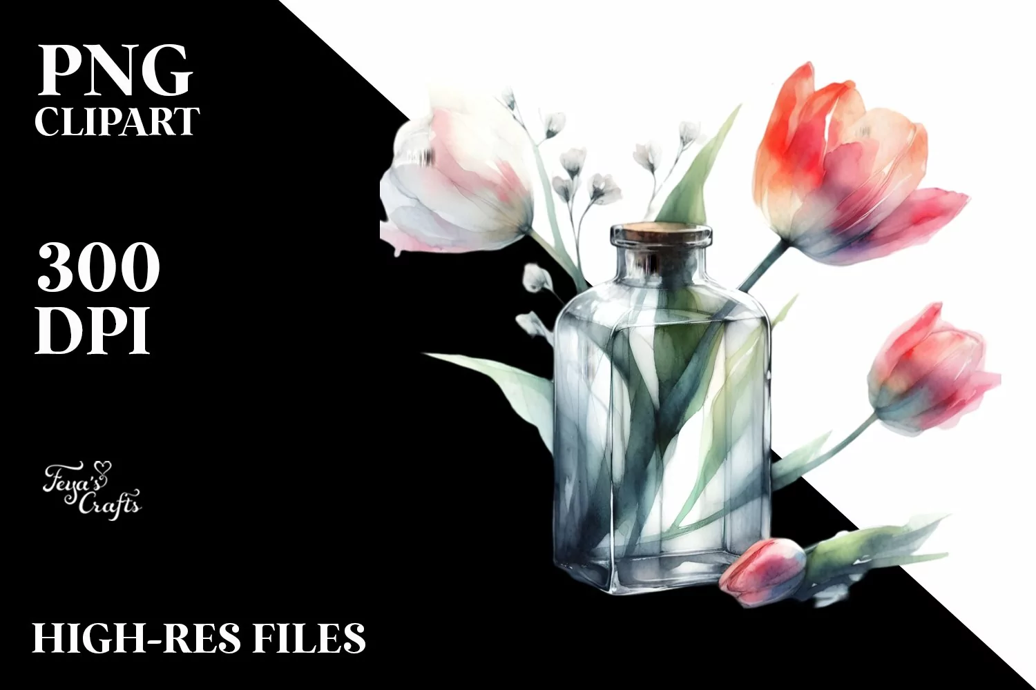 Abstract Watercolor Bottle with Tulip | Clipart example image 1