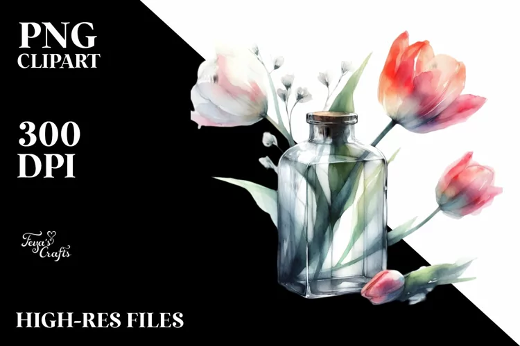 Similar Design Products to Abstract Watercolor Bottle with Tulip | Clipart