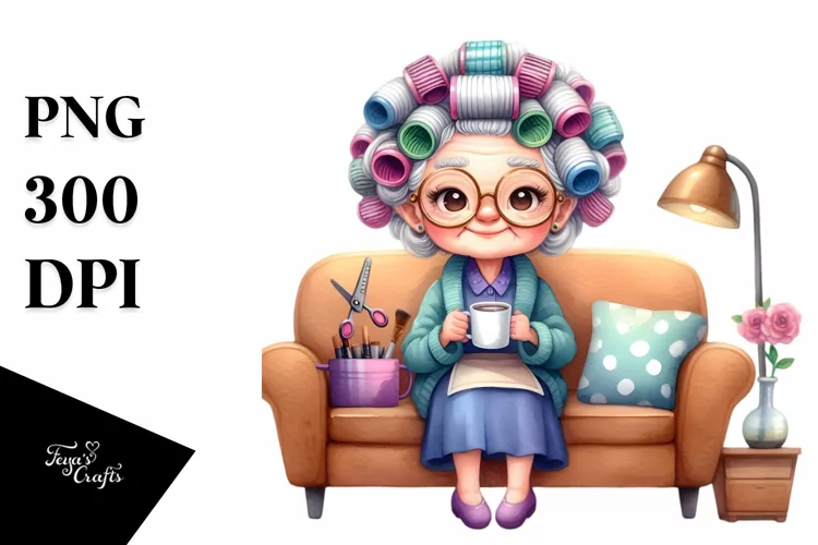 Similar Design Products to Old Lady Sitting on Couch | Sublimation Clipart