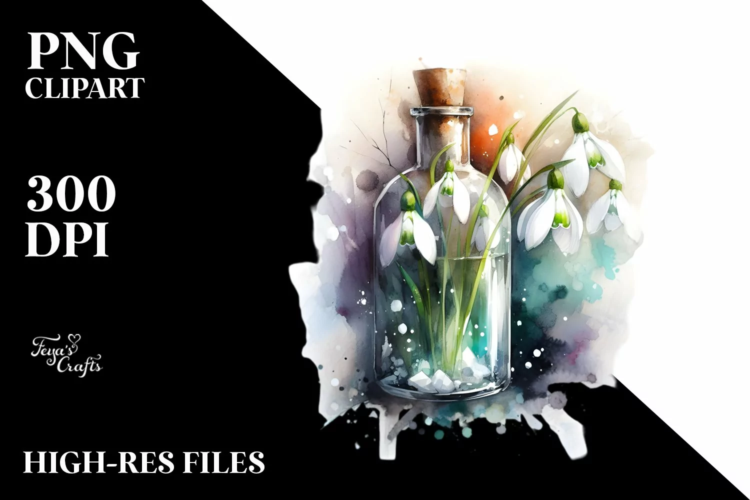 Abstract Bottle with Snowdrop | Sublimation Clipart