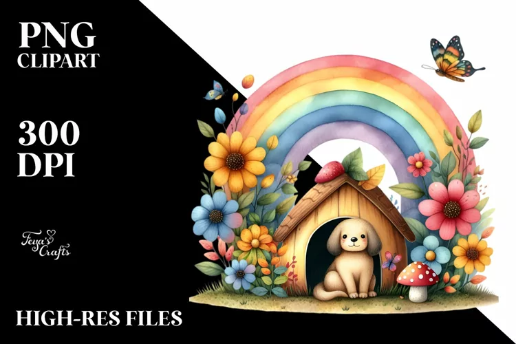Similar Design Products to Colorful Fruit House with Dog Clipart