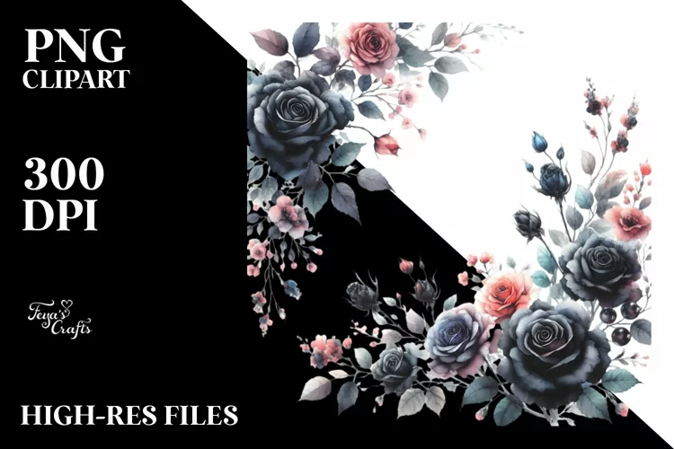 Similar Design Products to Watercolor Vibrant with Small Black Roses | Clipart