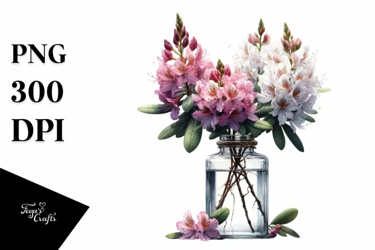 Watercolor Sticker Summer Colorful Flower Png Rhododendron Sublimation Narcissus Glassbottle