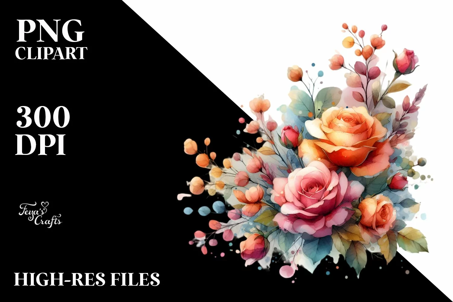 Watercolor Sticker Summer Colorful Flower Abstract Png Sublimation Orangeroses