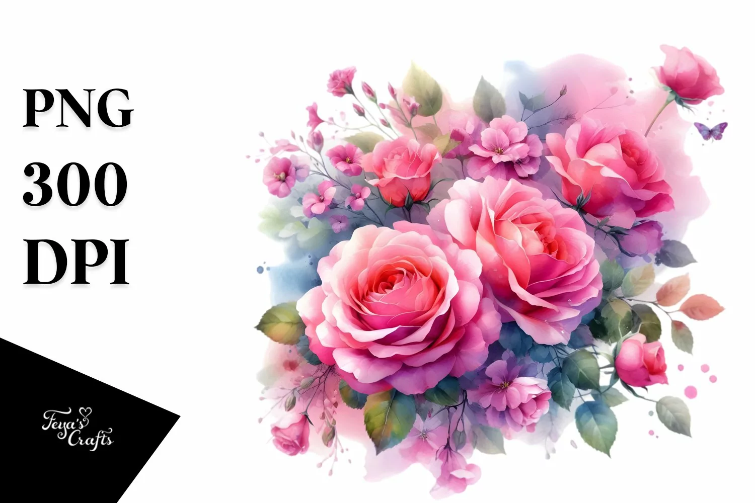 Similar Design Products to Vibrant Watercolor with Pink Roses | Clipart