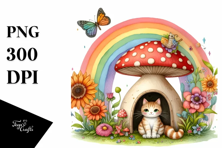 Similar Design Products to Vibrant Cat House with Colorful Mushroom | Clipart